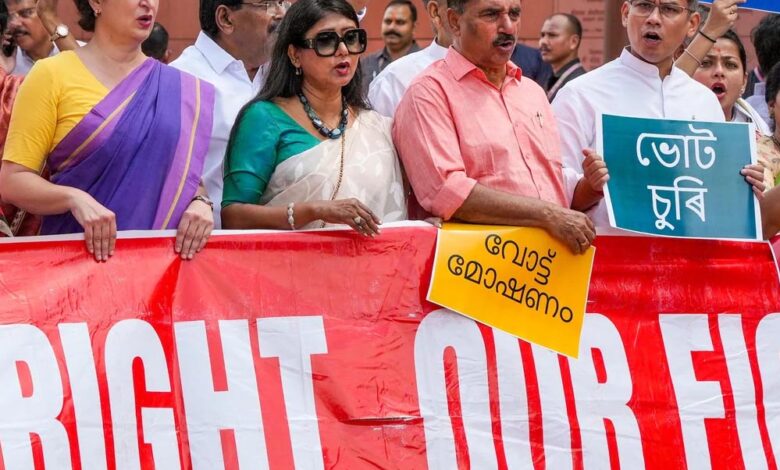 इंडिया गठबंधन के प्रमुख घटक दल कांग्रेस के पूर्व अध्यक्ष और लोकसभा में विपक्ष के नेता राहुल गांधी का सीधा आरोप है कि चुनाव आयोग भाजपा के साथ मिलकर वोट चोरी करवा रहा है और भाजपा को फायदा पहुंचा रहा है। गांधी के आवास पर पिछले सप्ताह आयोजित डिनर में इस विषय पर चर्चा के बाद तय हुआ था कि गठबंधन दलों के सांसद इस मुद्दे पर संसद भवन के मकर द्वार से चुनाव आयोग के कार्यालय तक ट्रांसपोर्ट भवन होते हुए मार्च करेंगे। इसमें संसद के दोनों सदनों के सदस्य भाग लेंगे।