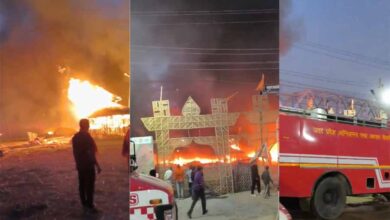 महाकुंभ मेले के सेक्टर 18 और 19 के बीच ई पंडालों में लगी आग