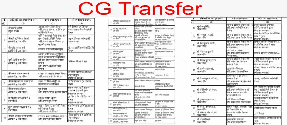 CG Transfer Breaking: 38 अधिकारियों का बड़ा फेरबदल, GAD ने जारी की ट्रांसफर लिस्ट