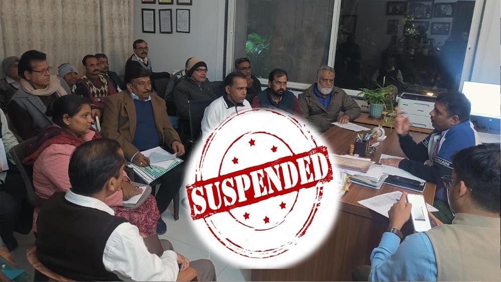 कलेक्टर रविवार रात SIR कार्य की समीक्षा कर रहे थे, जिसमें सामने आया कि विधानसभा क्षेत्र उत्तर के मतदान केंद्र दो के BLO अनंतलाल मिश्रा की ओर से लगातार निर्देश देने के बाद भी एक भी गणना पत्रक BLO एप पर डिजिटाईज नहीं किया गया है। इसी तरह विधानसभा क्षेत्र गोविंदपुरा के BLO सुपरवाईजर शुभम प्रताप सिंह ने लक्ष्य के अनुरूप बीएलओ से कार्य नहीं करवाया और प्रत्येक बीएलओ से प्रतिदिन 100 गणना पत्रक बीएलओ एप पर डिजिटाईज नहीं करवाया गया है।इस तरह अनंत लाल मिश्रा और शुभम प्रताप सिंह द्वारा SIR कार्य में लगातार लापरवाही बरतने पर निलंबित किया जाता है।
