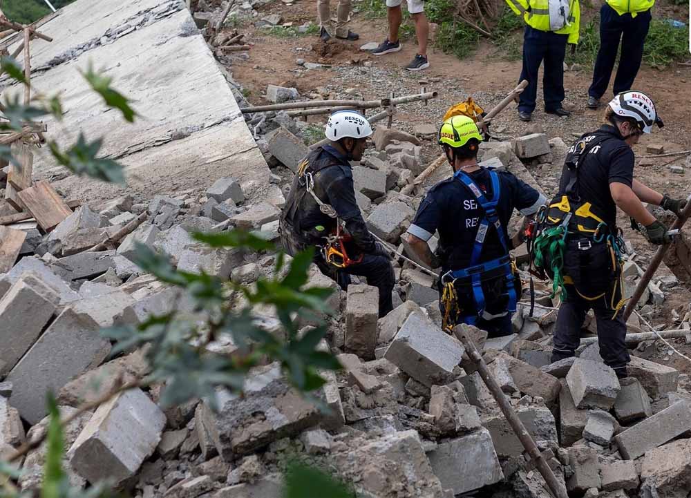दक्षिण अफ्रीका रिस्पॉन्स इकाई के प्रवक्ता प्रेम बलराम की तरफ से स्थानीय मीडिया को बताया गया कि बचाव अभियान फिलहाल जारी है। चार शवों में से अभी एक की पहचान विक्की जयराज पांडे (52) के रूप में हुई है, जो पिछले दो साल से मंदिर की स्थापना के बाद से इसमें सेवा दे रहे थे। पांडे की मृत्यु की पुष्टि में मंदिर से संबंध धर्मार्थ संस्था 'फूड फॉर लव' के निदेशक सनवीर महाराज ने भी की है। उन्होंने बताया कि पांडे पिछले दो साल से मंदिर के कार्यकारी सदस्य और निर्माण परियोजना के प्रबंधक थे। वहीं, दूसरी तरफ जब इस बारे में इथेक्विनी (पूर्व में डरबन) की नगर पालिका से संपर्क किया गया, तो उन्होंने बताया कि प्रारंभिक जांच के आधार पर इस जगह को मंदिर बनाने के लिए कोई स्वीकृति नहीं मिली थी। इस आधार पर यह एक अवैध निर्माण था।
