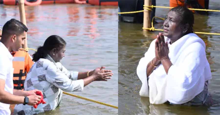 राष्ट्रपति द्रौपदी मुर्मू ने त्रिवेणी संगम में लगाई डुबकी