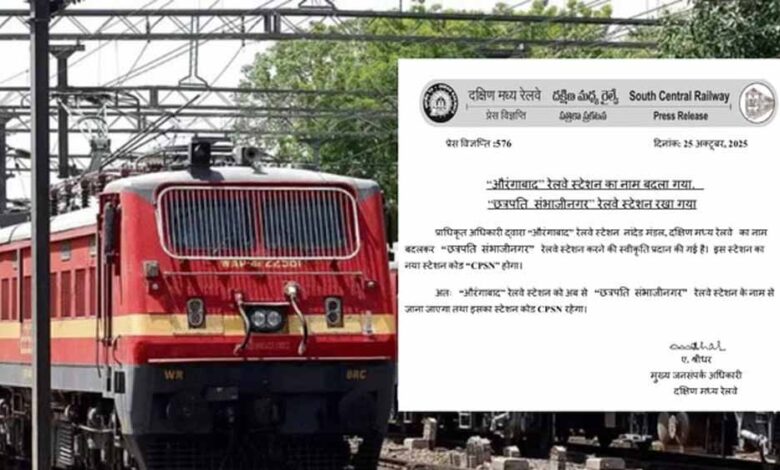 दक्षिण मध्य रेलवे ने औरंगाबाद’ से नाम बदलकर किया ‘छत्रपति संभाजीनगर’ का ऐलान